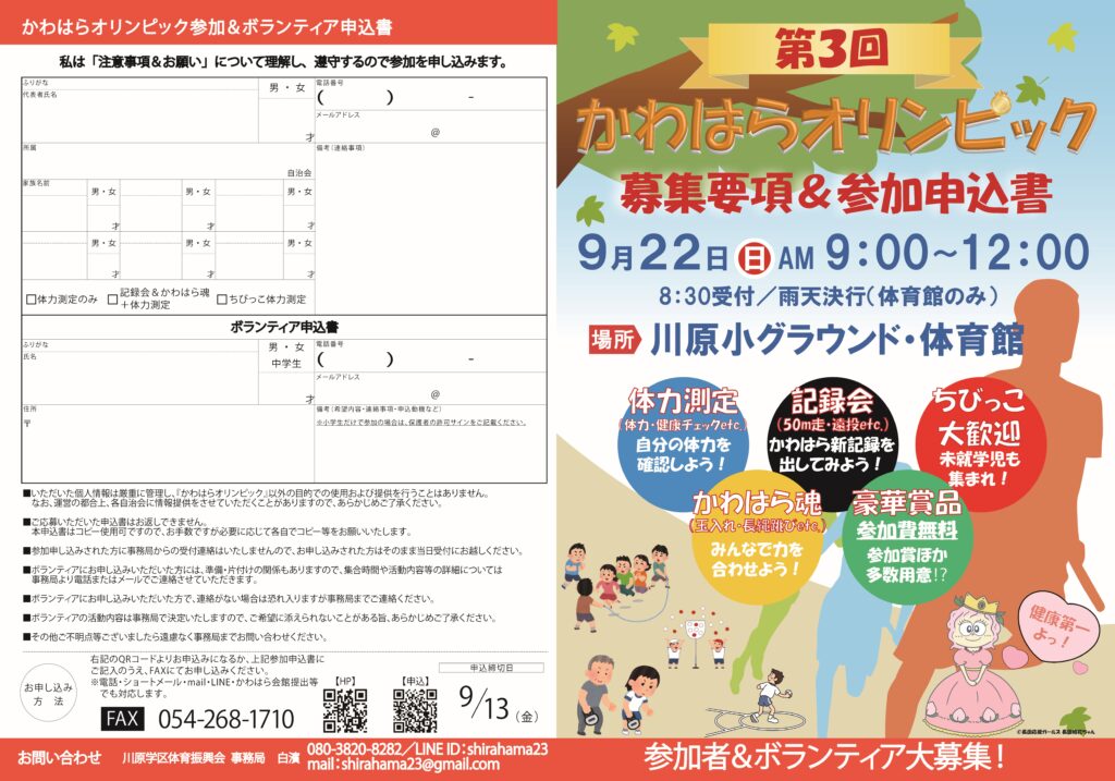第3回かわはらオリンピック開催決定! 2024 8/18 スポーツ振興会 2024年5月2日2024年8月18日 毎年大好評の川原学区体育振興会主催の「かわはらオリンピック」が 令和6年度も開催することが決定しました!!! かわはらオリンピック募集要項(A3表) かわはらオリンピック募集要項(A3裏) 多くの皆さまのご参加をお待ちしています♪ スポーツ振興会 よかったらシェアしてね! URLをコピーしました! URLをコピーしました! 雨天決行です! 関連記事 ご来場ありがとうございました♪ 2025年9月21日 (締切延長)第4回かわはらオリンピック開催決定! 2025年7月23日 ご来場ありがとうございました! 2024年9月23日 雨天決行です! 2024年9月19日